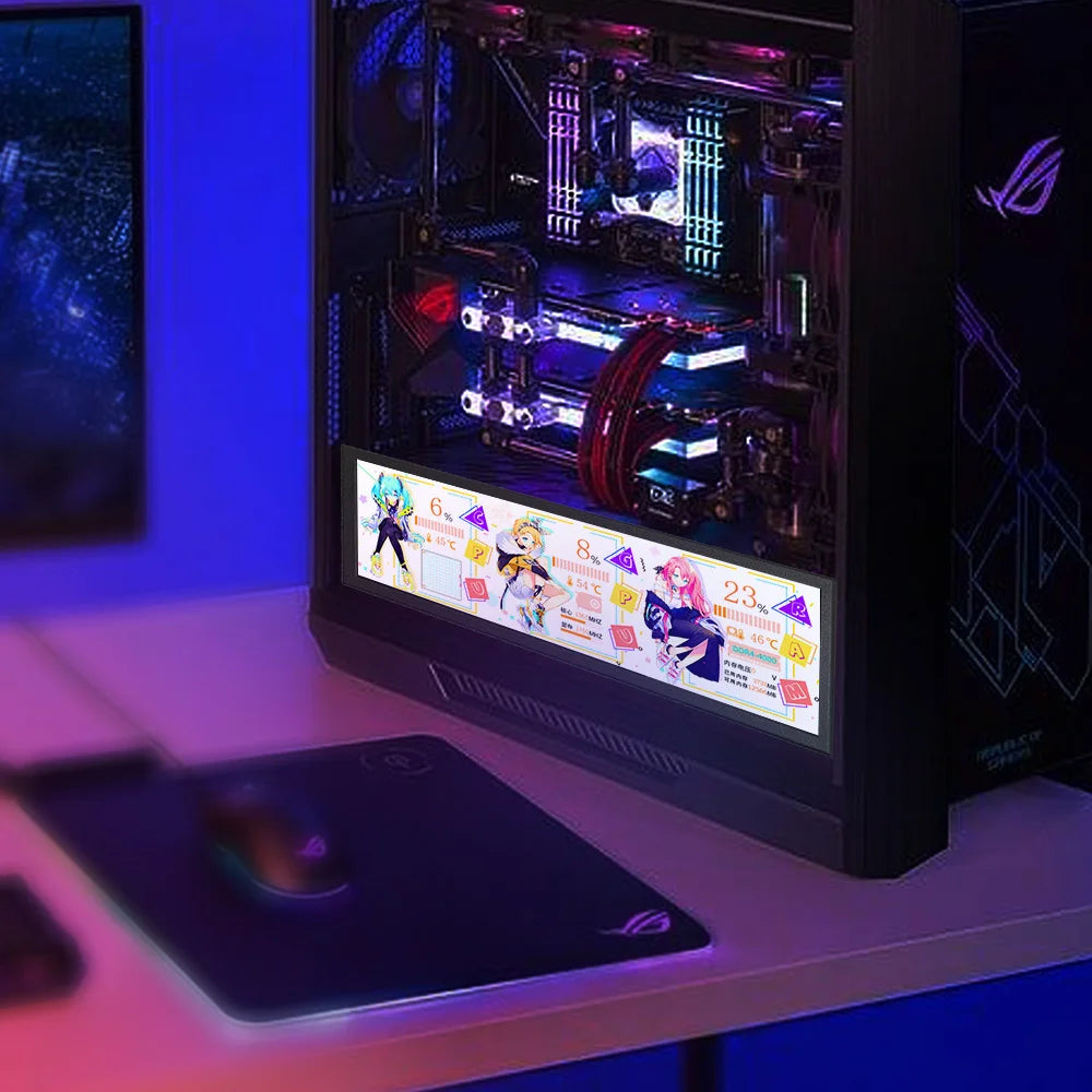 Das 8,8″ Streifen-Display ist die perfekte Erweiterung für dein Setup. Egal ob du deine Systemwerte per AIDA64 anzeigst, Chatfenster oder Tools auslagerst oder einfach ein stylisches Zusatzdisplay fürs Homeoffice nutzen willst – dieses Monitorformat macht’s möglich. Mit HDMI für das Bildsignal und USB-C für Strom und OSD lässt es sich an fast jedes Gerät anschließen. Dank IPS-Technologie genießt du weite Blickwinkel, satte Farben und zuverlässige Darstellung – in einem kompakten, ultrabreiten Format.