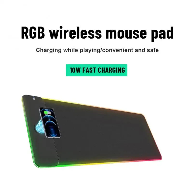 XXL RGB Wireless Charging Mousepad 800×300 mm – 15 W Qi, abgedichtete Oberfläche